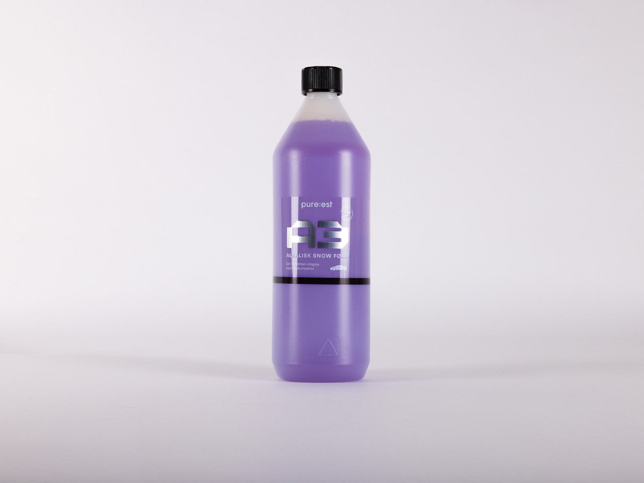 pureest A3 är en alkalisk avfettning, lik pureest A2 men som är anpassad för att skumma betydligt mer. Det är inte bara en fröjd för ögat när bilen är täckt med skum, det finns även praktiska anledningar. Det tjocka skummet gör att medlet kan ligga på längre utan att torka in, vilket gör att A3 får längre tid på sig att lösa upp all smuts. Det är också ett snabbare sätt att applicera avfettningen. Produkten har en alkalisk bas, vilket betyder att den biter bra mot pollen, fågelbajs och annan allmän organisk smuts. A3 har en mildare PH-nivå än A2, vilket gör att den är snäll mot lackskydd, vax, lampor och lister. Om fordonet är ordentligt smutsigt så rekommenderar vi att använda pureest A2.